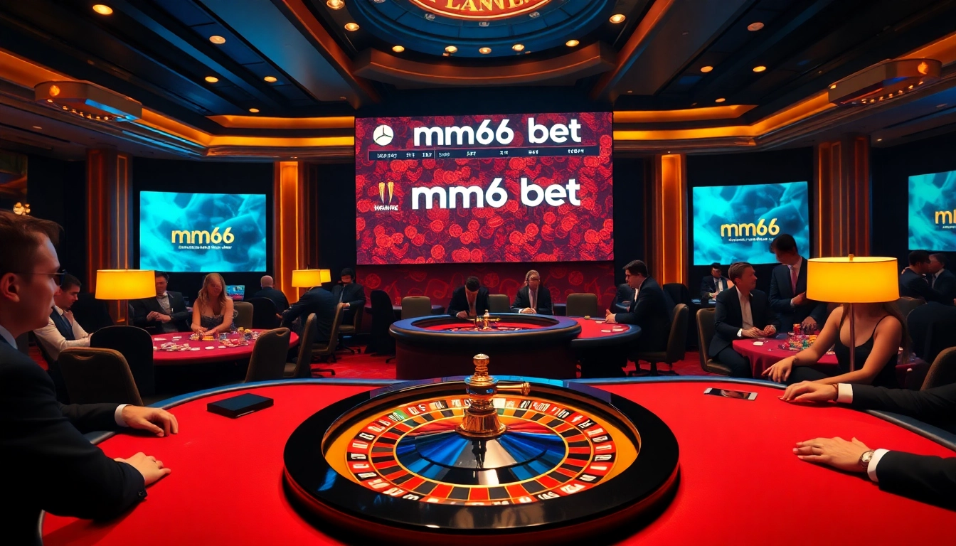 Players engaged in a thrilling game at a luxurious casino, promoting mm66 bet with vibrant atmosphere.
