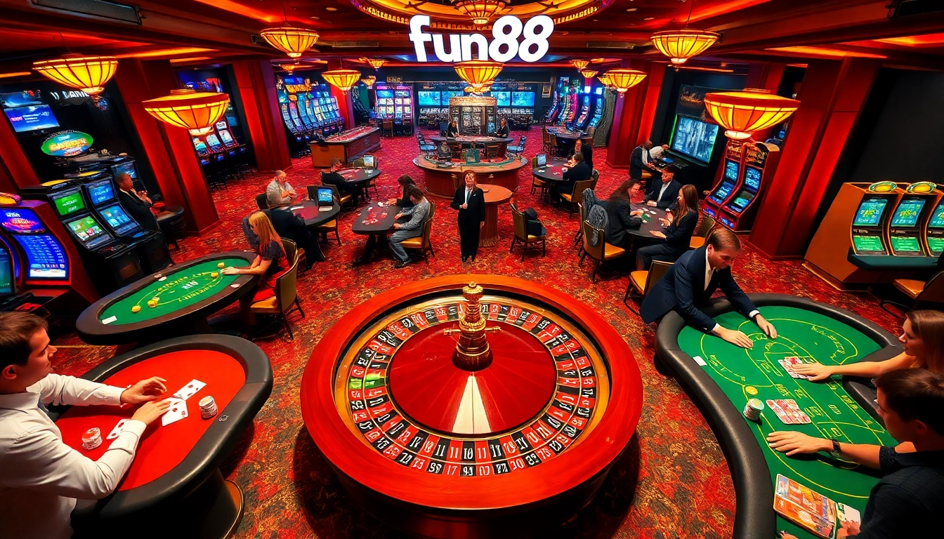 Experience the thrill of gambling at Fun88's luxurious casino with vibrant tables and exciting games.