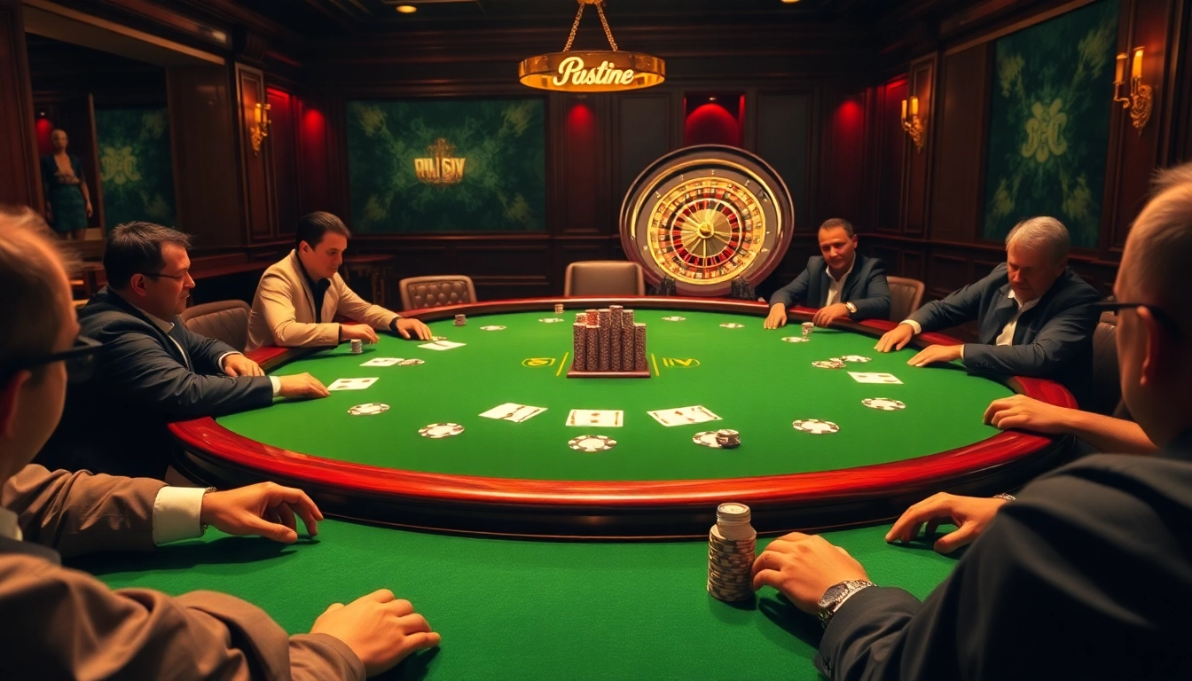 Exciting poker game at 888 vi, showcasing vibrant chips and cards in a luxurious casino setting.